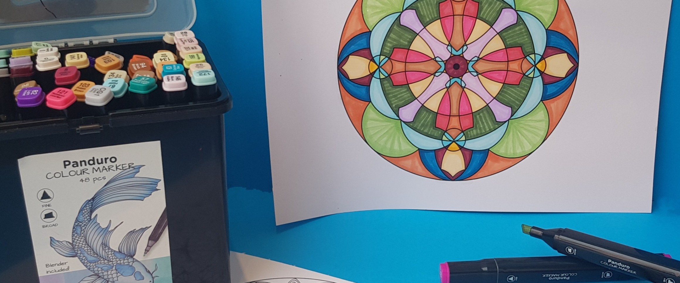Välkommen in på Workshop hos oss på Panduro! Under en timmas tid utforskar vi olika tekniker alkoholbaserade tuschpennor. Vad händer när vi lägger dem i lager och blandar det som redan finns på papper? Pennorna har en svag doft och därför rekommenderar vi dem inte för de allra yngsta konstnärerna.